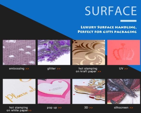 | Surface Artwork | Hot stamping(gold or silver hot stamping)/Glitter/Embossing/ UV/3D |