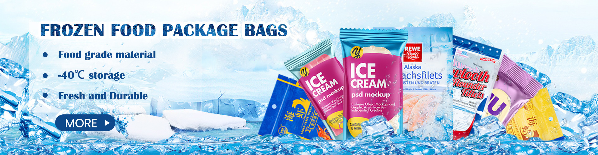 Customized Printed Logo Three Side Seal Back Seal Plastic Frozen Food Packaging Bag for Ice Cream Fish Chicken Package