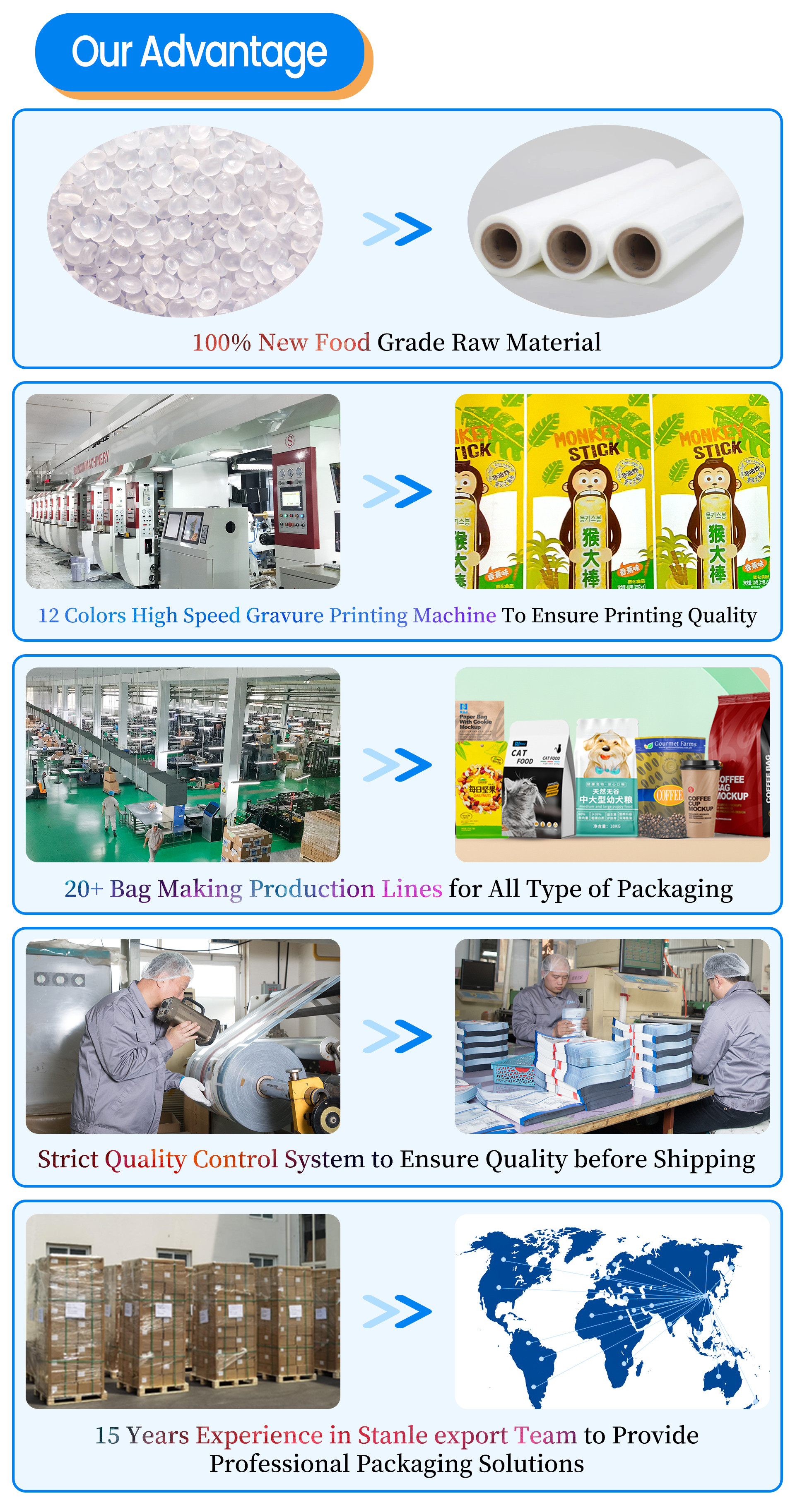 | Feature | Food Grade,High Barrier,Strong Sealing,Perfect Printing |