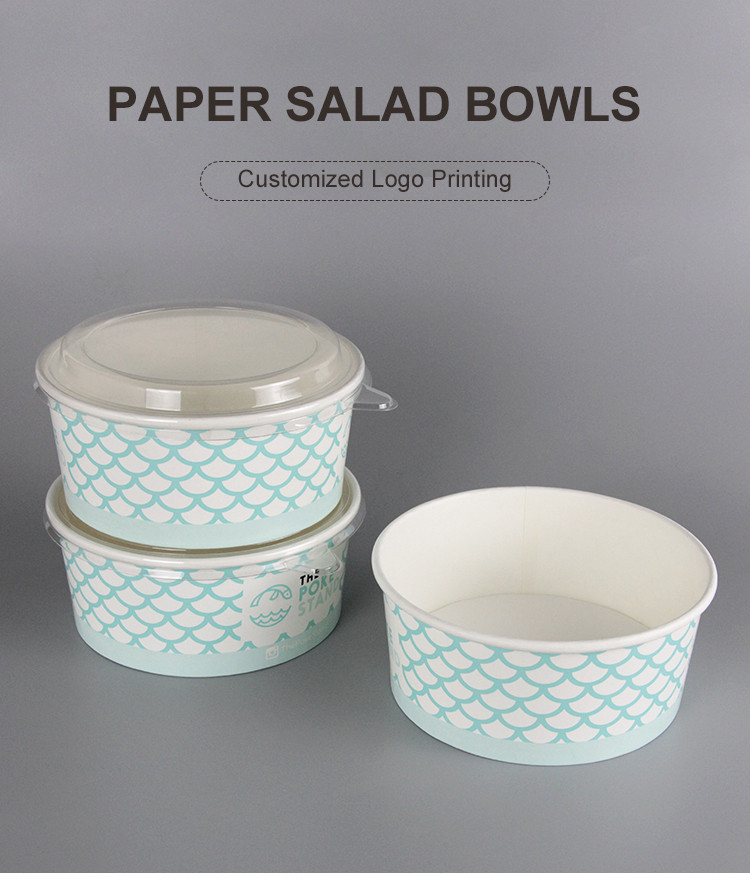 Disposable Rice Food Containers Paper Salad Bowl Custom Printed Paper Bowl With Lid