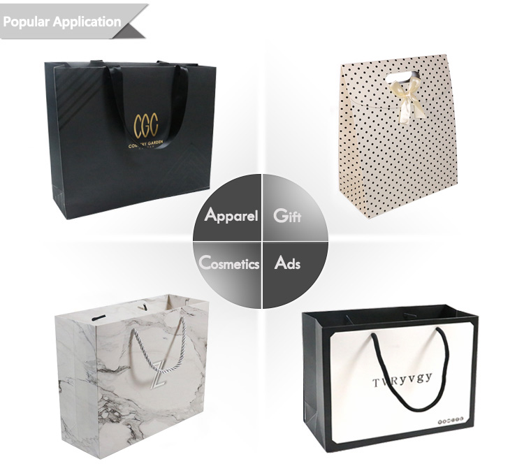 | Handles options | Cotton,Ribbon,PP,Twisted paper cord,Die-cut,Flat cotton,Nylon rope,etc |