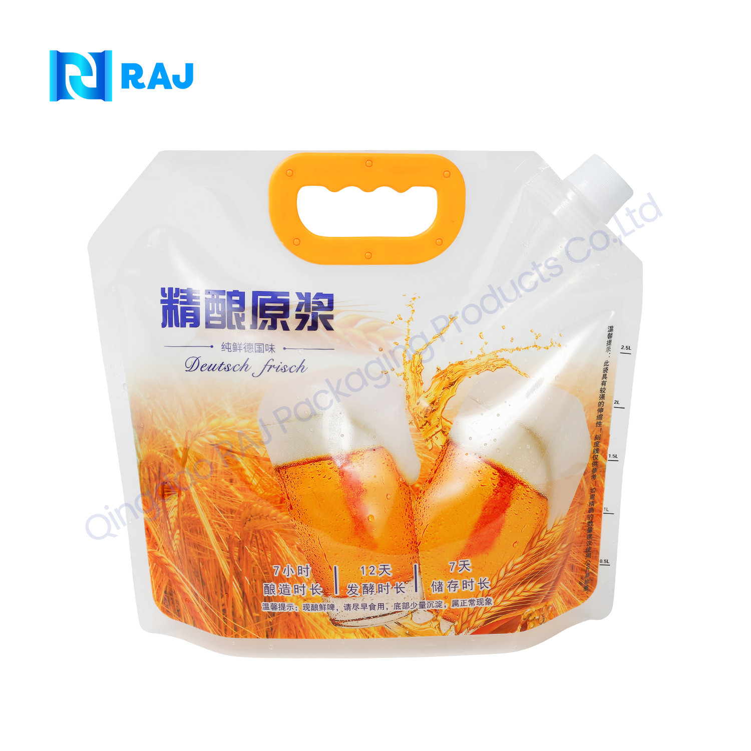 Wholesale portable thickened transparent liquid beer packaging bags beverages and beverages liquid stand up 1 litre spout pouch